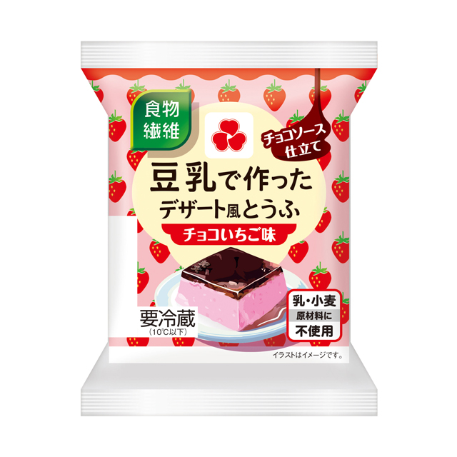 豆乳(国内製造)、砂糖、チョコレートシロップ(糖類(水あめ、砂糖、果糖ぶどう糖液糖)、ココアパウダー、食塩)、イヌリン、でん粉、いちごピューレ(いちご、砂糖)、食塩、寒天/糊料(増粘多糖類)、加工でん粉、pH調整剤、香料、着色料(クチナシ)、(一部に大豆を含む)